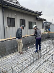 基礎鉄筋施工に関する箇所を念入りに見ていきました。